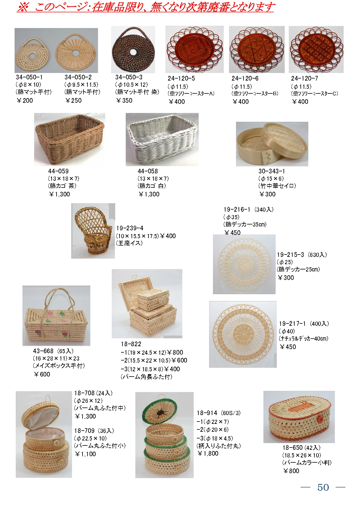 ★籐篭・パーム、籐カトラリー ▶ 詳しく見る